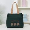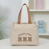 Cute Small Bear Printed Canvas Versatile Handbag Commuter Office Worker Lunch Bento Tote Bag