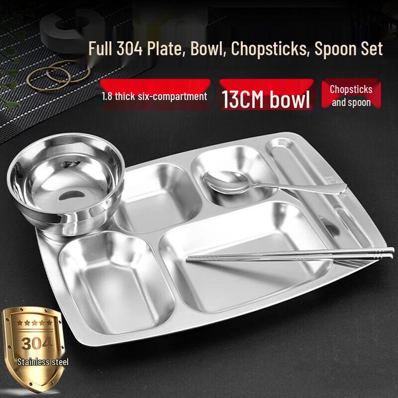 Model304 Extra Thick, Six Compartments, 13cm Bowl, 304 Chopsticks & Spoon
