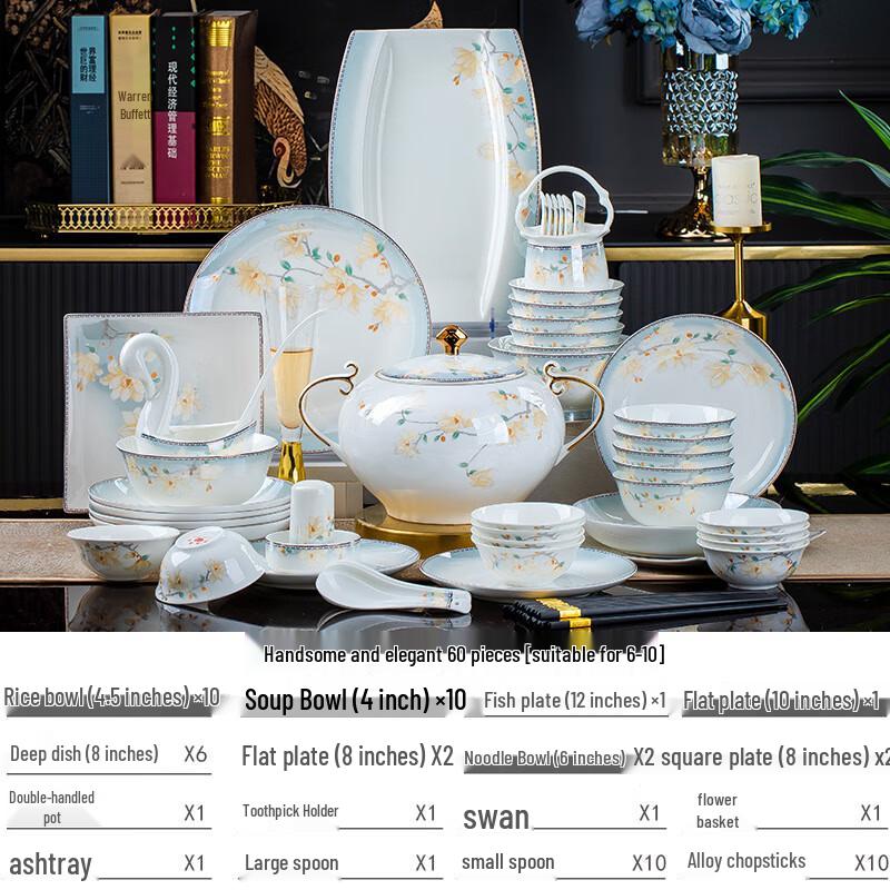 Jingdezhen Elegant 60-Piece Ceramic Dinnerware Set