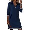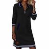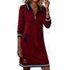 Women's Minimalist Casual Zipper Collar Pocket Color-Block Long-Sleeve Dress