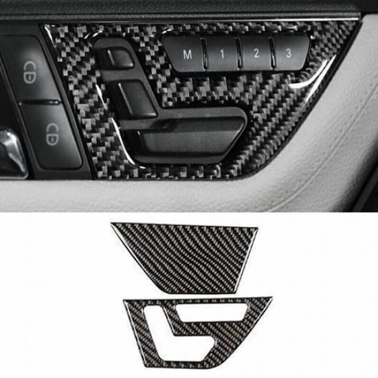 For Benz C-Class 2007-14 Real Carbon Fiber Memory Seat Button Switch Cover Trim