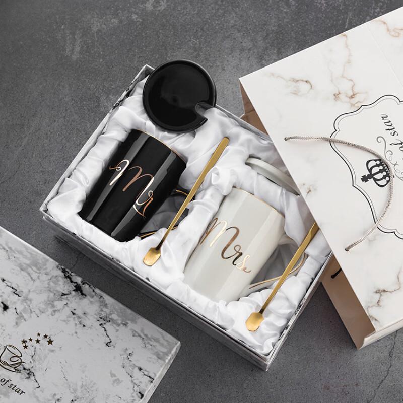 Shangqi Gold Rim Ceramic Couple Mug Set
