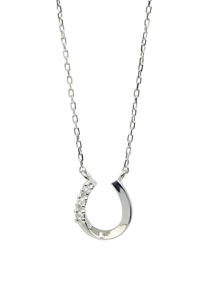 Diamond Horseshoe Petite 10k White April Ma566 [Four-Leaf Clover] Necklace, Gold, Birthstone