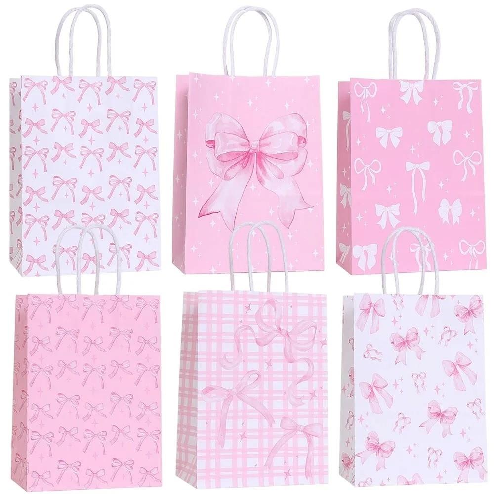 12Pcs Paper Gift Packing Bag Pink Bow Candy Cookie Bags Durable Present Wrap Bag Celebration