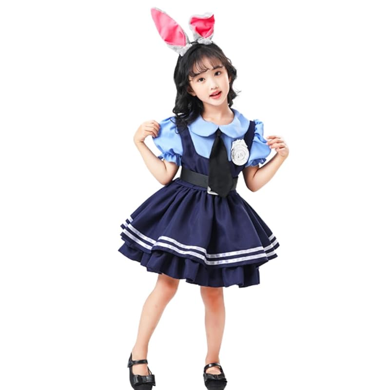 [asayurii] Girls' Rabbit and Fox Police Halloween Costume, Kids' One-Piece Dress, Anime Animal Costume, Long or Short Sleeve, Police Officer Costume,