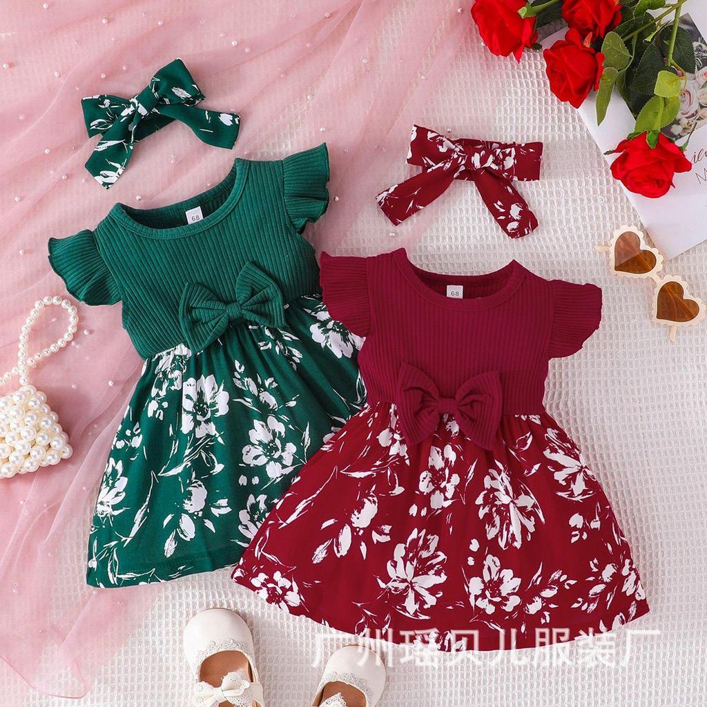This charming two-piece set is perfect for your little one's summer wardrobe. Crafted from soft cotton, the outfit includes a delightful fly sleeve dress adorned with a playful patchwork design. Accompanying the dress is a matching headscarf, completing the adorable look. Ideal for both European and American summer styles, this ensemble offers both comfort and cuteness for your baby girl.