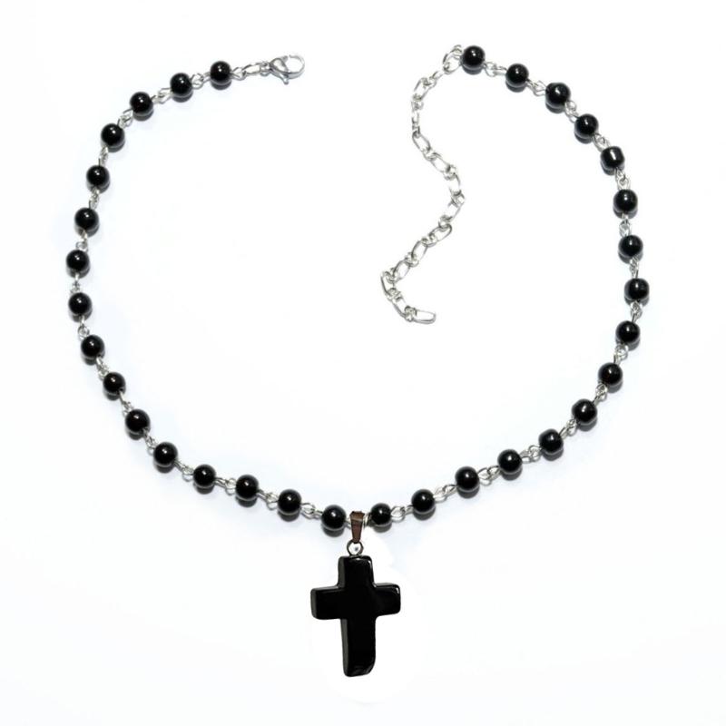 Gothic Crucifix Necklace Retro Choker Religious Clavicle Chain Cross Pendant Jewelry Stylish Pearl Beaded Ornaments