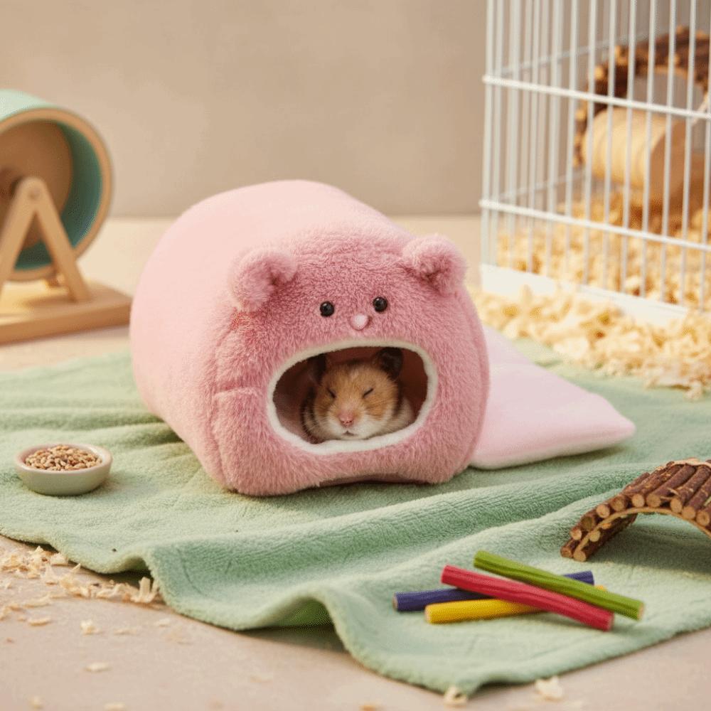 Cartoon Bear Shape Hamster Warm Bed Fleece Cute Hamster Cage Bed Cozy with Mat Pet Sleep Nest Small Pet