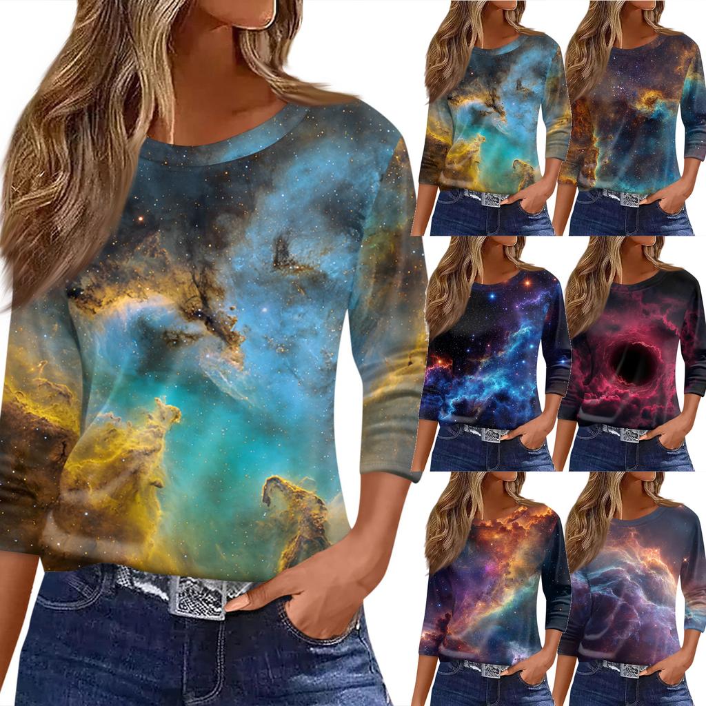 Women's T Shirt Print 3/4 Sleeve Daily Weekend Fashion Basic Round Neck Regular Top