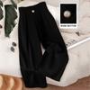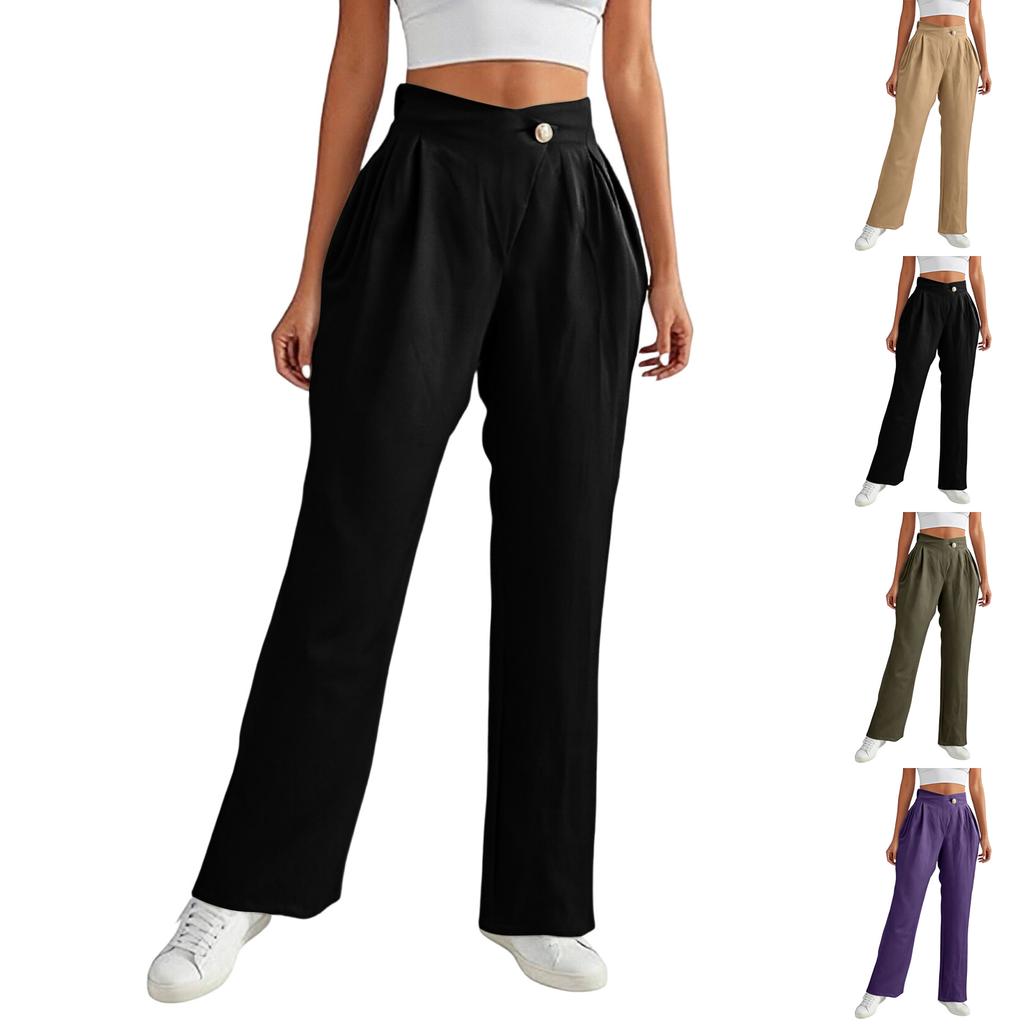 Women's Casual And Stylish Color Button Wide,leg Trousers