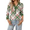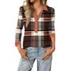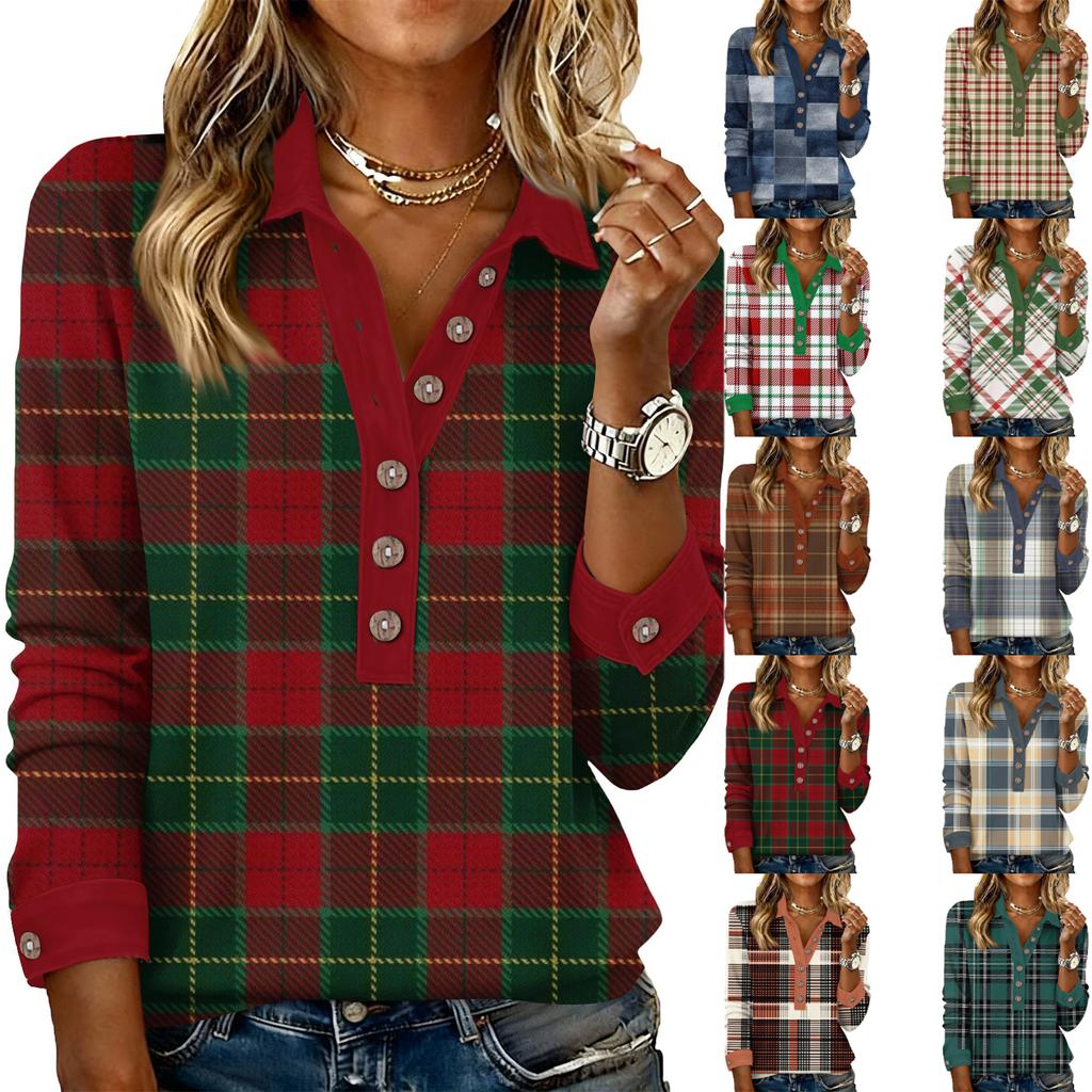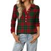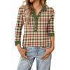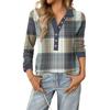 Women's Retro Street Lazy V,neck Long Sleeve Button Plaid Print Pullover Top