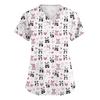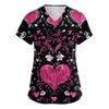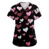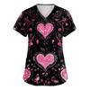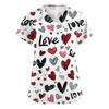 Women's V,neck Valentine's Day Printed Short,sleeved Pocket Side,slit Protective Suit Top