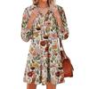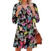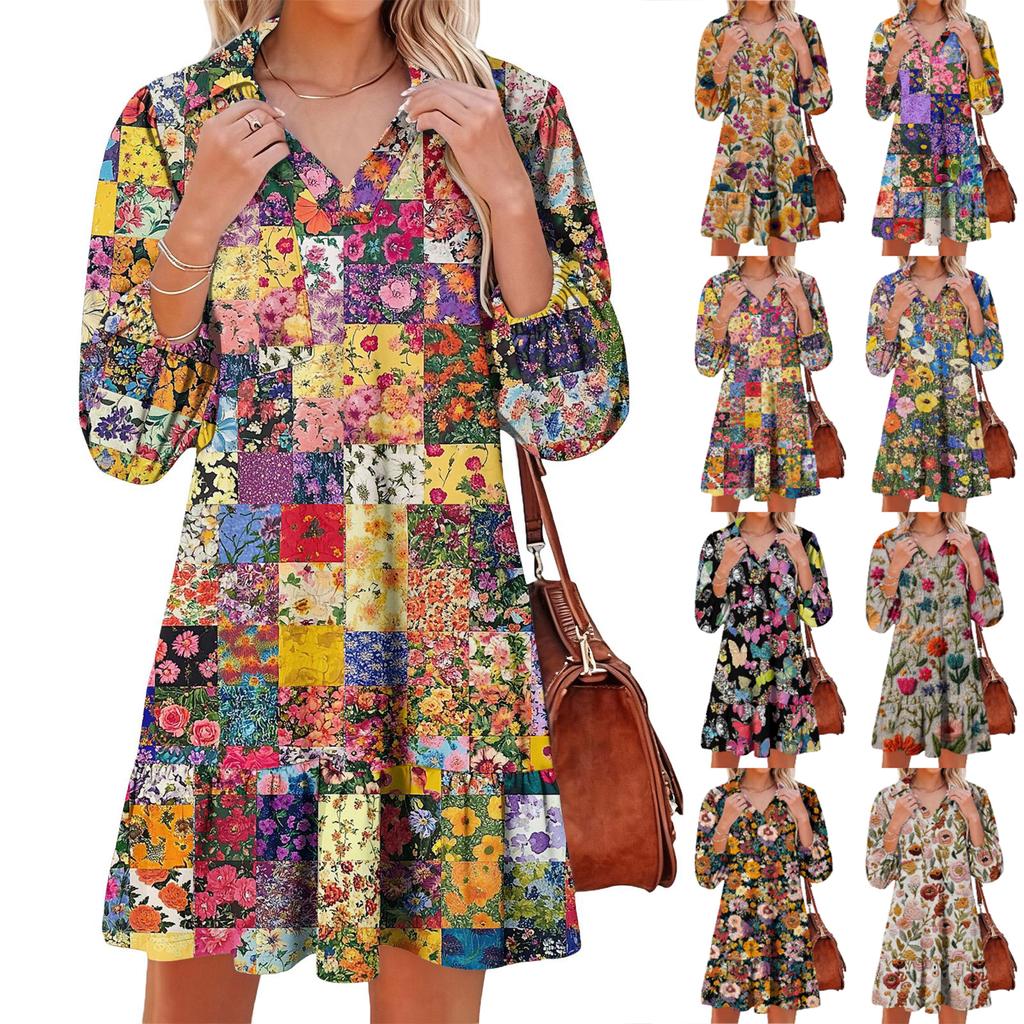 Women's Fashion Elegant Autmn And Winter Long Sleeve V,Neck Christmas Print Dress