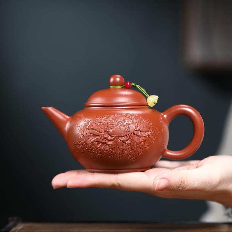 250ml Exquisite Yixing Purple Clay Teapots Master Handmade Peony Pot Raw Ore Zhu Mud Tea Maker Kettle With Strainer Zisha Teaset