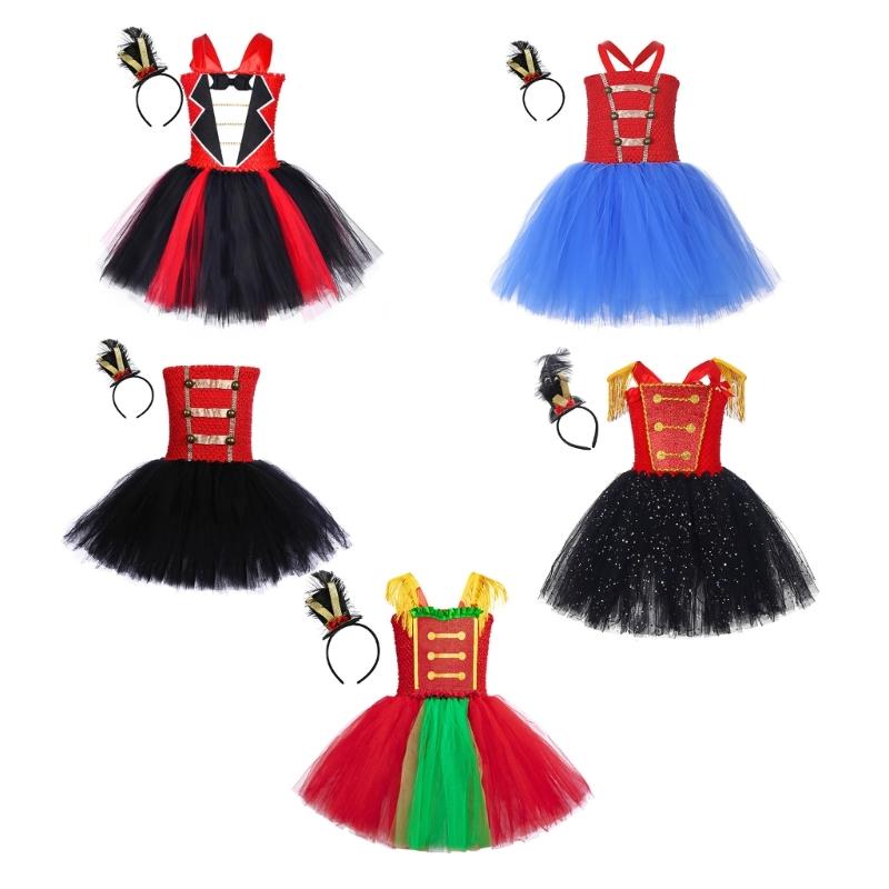 Girls Tutu Dress with Headband Glittering Princess Dress Holiday Clothes Circus Ringmasters Costume for Party