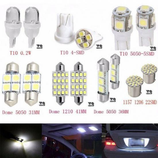 14Pcs Car White LED Lights Kit For Stock Interior & Dome & License Plate Lamps
