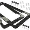 1/2pcs Black Carbon Fiber Pattern Plastic License Plate Frame Fiber Black Aluminum Metal Car Tag Holder Tire Screw Cap Universal