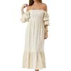 Women's Off Shoulder Maxi Dress Long Puff Sleeve Square Neck Boho Flowy Dress Floral Print Smocked Waist Long Dress