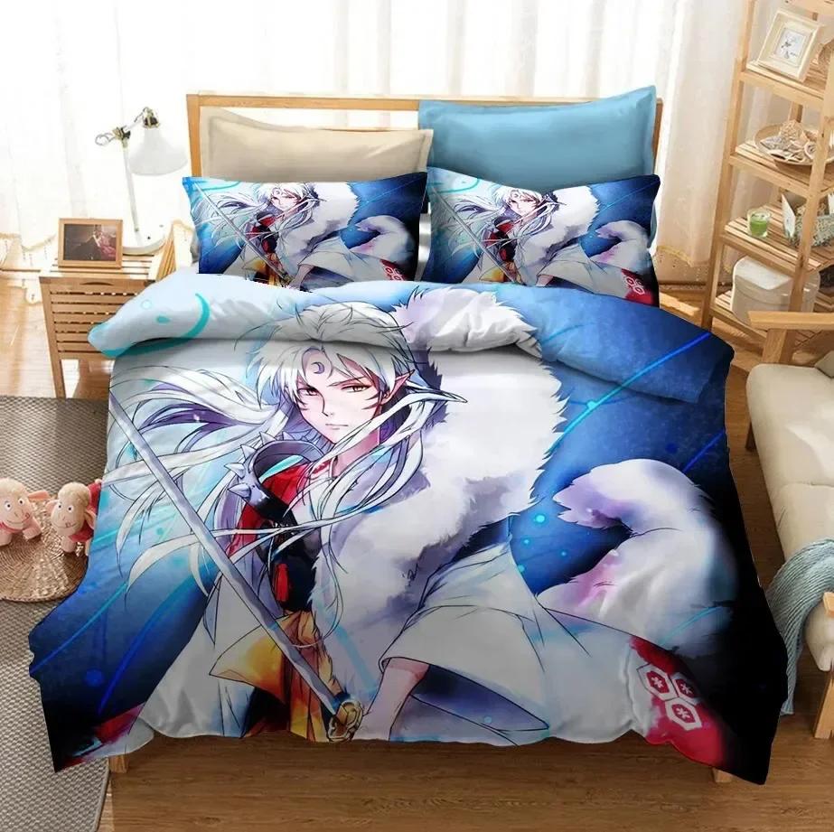 3D Anime Inuyasha Duvet Cover Ses Shoumaru Printed Bedding Set Anime Bed Linen Set Cartoon Bedroom Decor Gifts for Anime Fans
