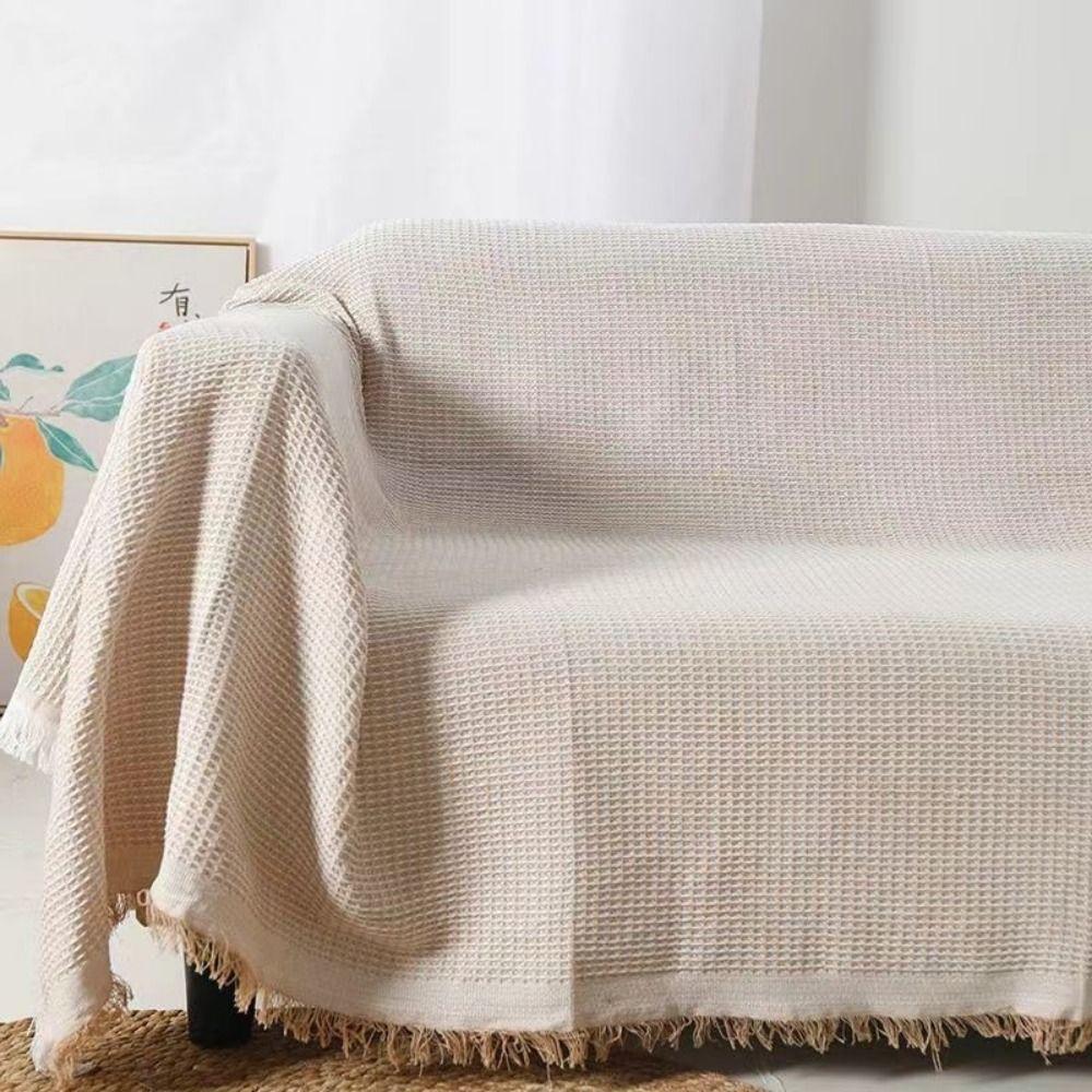 With Tassels Throw Blankets Anti-slip Vintage Cotton Blankets New Knitted White Sofa Towel