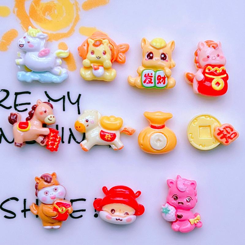 10Pcs 2026 The Year Of Horse Accessories Nail Art Charms Horse Yuanbao Lucky Bag Design Resin Nail Art Rhinestion Decoration