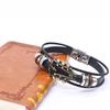 Alloy Music Guitar Leather Bracelet With Flag Colored Enamel Stainless Steel Buckle And Woven Leather Strap.