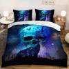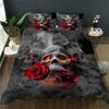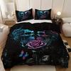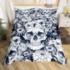 Sugar Skull Duvet Cover King, 3D Skull Bedding Set for Boys Girls, Bones Skeleton Blue Roses Comforter Cover with Pillowcases