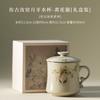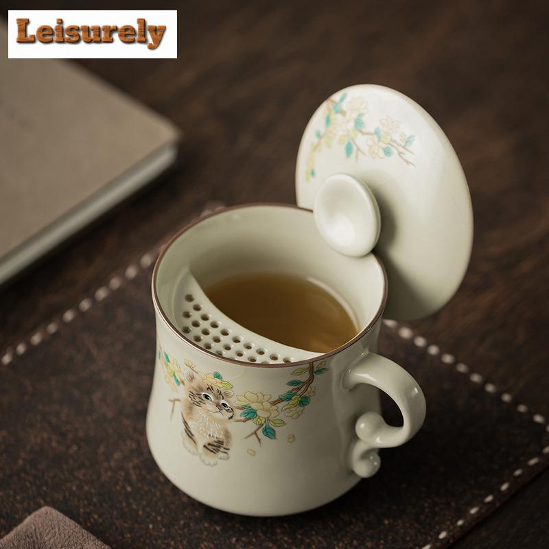 350ml Ru Kiln Yellow Cat Crescent Moon Filter Tea Separator Cup Japanese Tea Mug With Infuser Tea Soaking Office Water Cup Craft