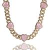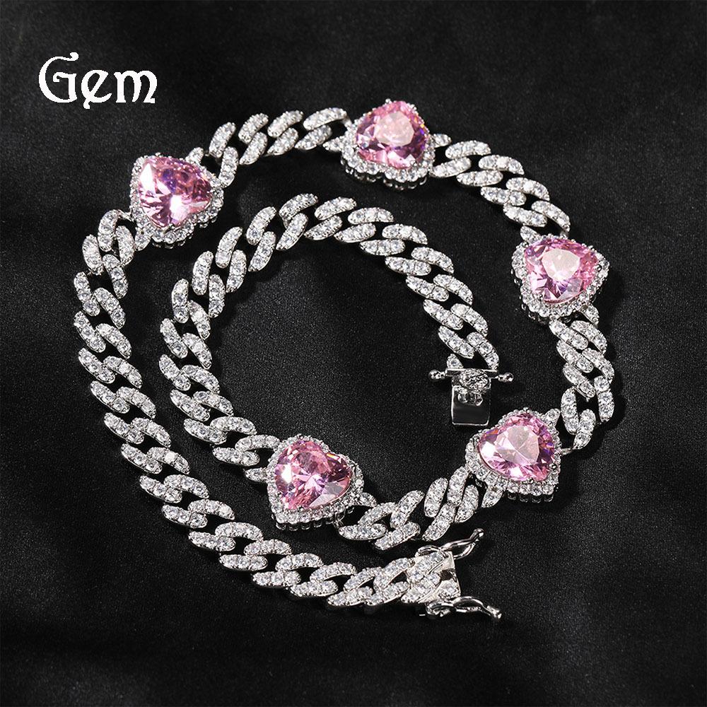 New Heart Splicing Necklace Hip Hop Personality 9MM Sweet Pink Zircon Cuban Chain Spice Girl Accessories