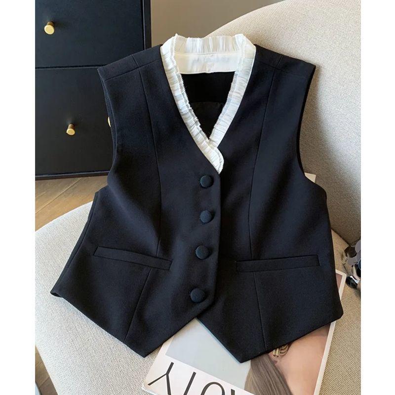 Black and White Suit Waistcoat Women's Color Block Spring Autumn Stylish Vest Jacket