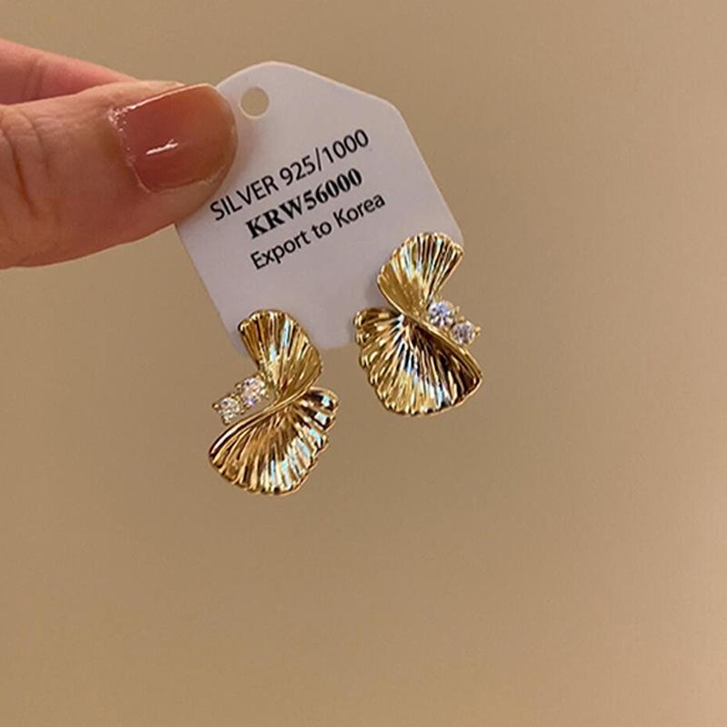 Silver Needle Zircon Metal Twisted Fan Leaf Earrings European and American Earrings, Earrings, Light Luxury Earrings, Design Sense Niche