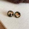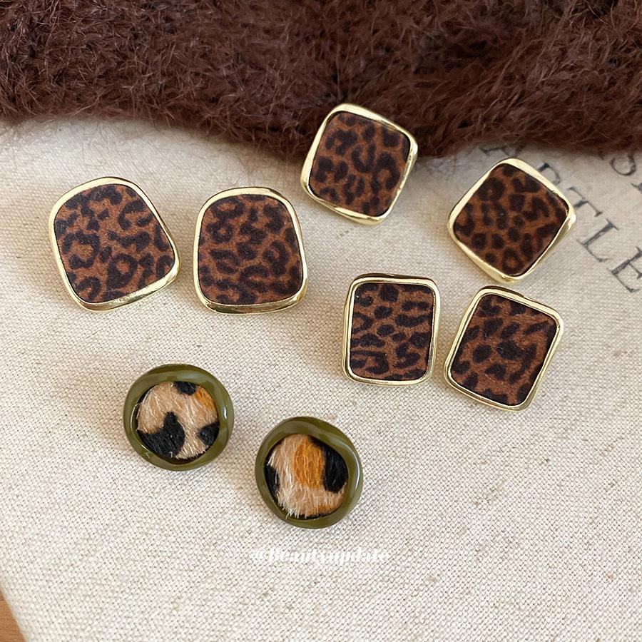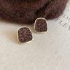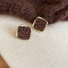 Silver Needle Leopard Square Round Stud Earrings Vintage Maillard Niche Earrings Earrings Daily Versatile Earrings