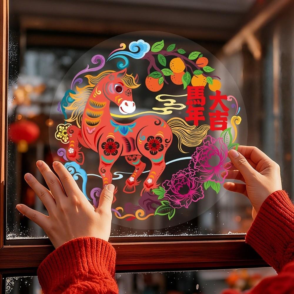 10pcs Creative 2026 Horse Year Window Decals Chinese New Year Door Stickers Party Supplies