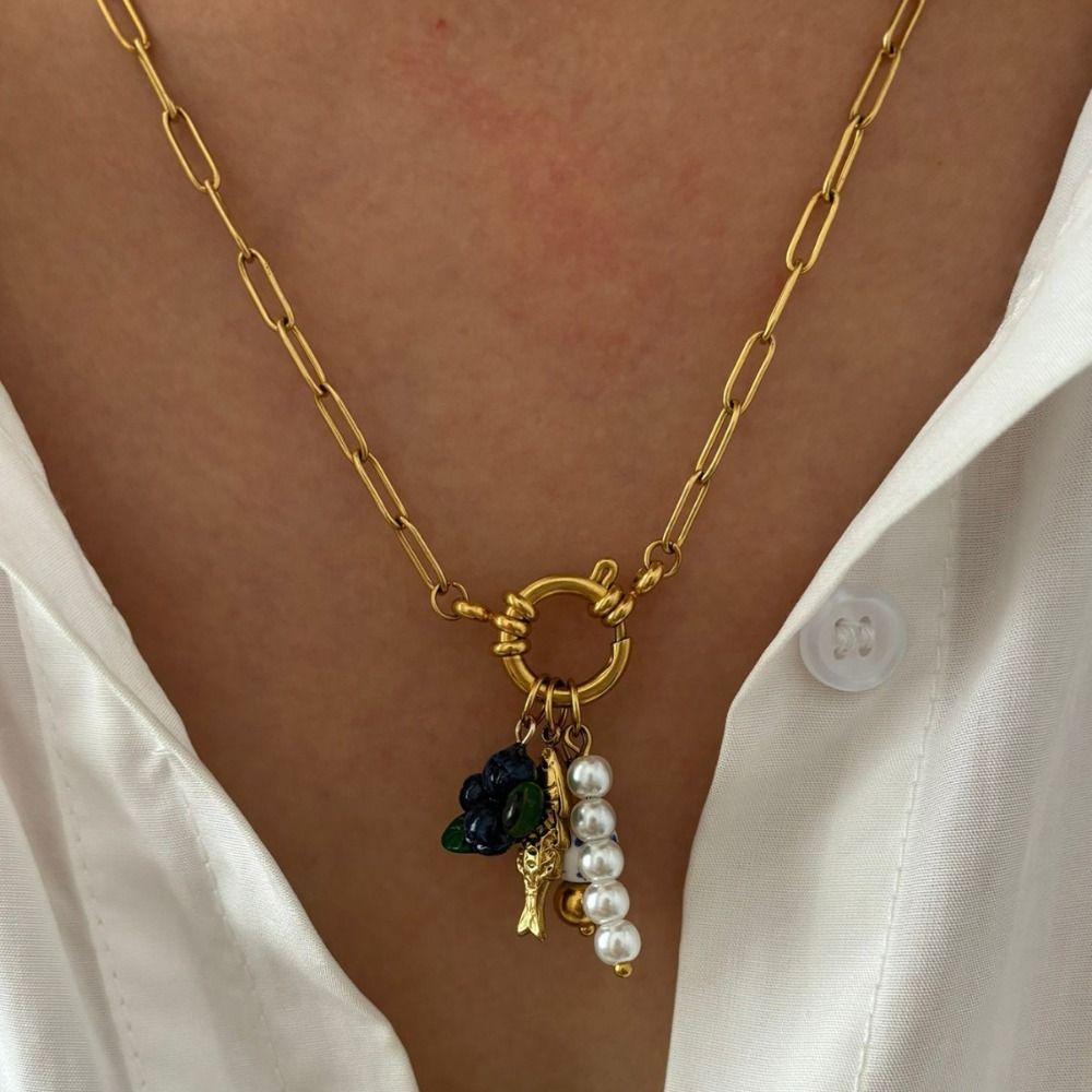 European Style Grape Blueberry Necklace Trendy Imitation Pearl Necklace Shell Pendant Choker Party