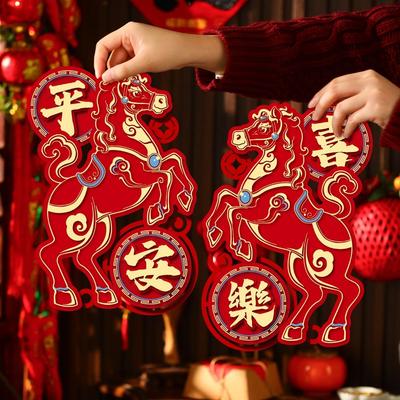 3D New Year Door Sticker Lucky Year of The Horse Wall Sticker Decoration Zodiac Blessing Fu Character Sticker Door Decor