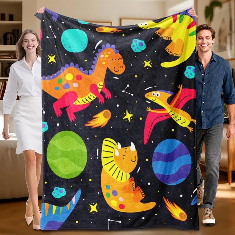 1 Piece Dinosaur Space Theme Flannel Blanket, Perfect for Sofa, Bed, Office. Ideal Gift for Family, Friends, and Holidays.