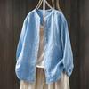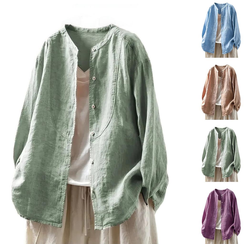 Women's ,color Cotton And Linen Long,sleeved Cardigan Shirt Top