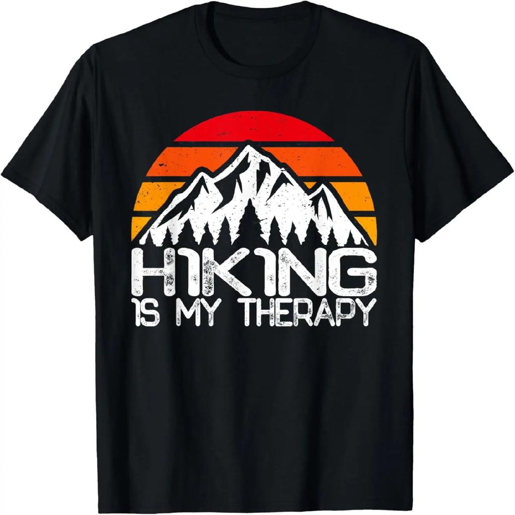 Hiking Is My Therapy Hiking Camping Retro Sunset Hiker T-Shirt