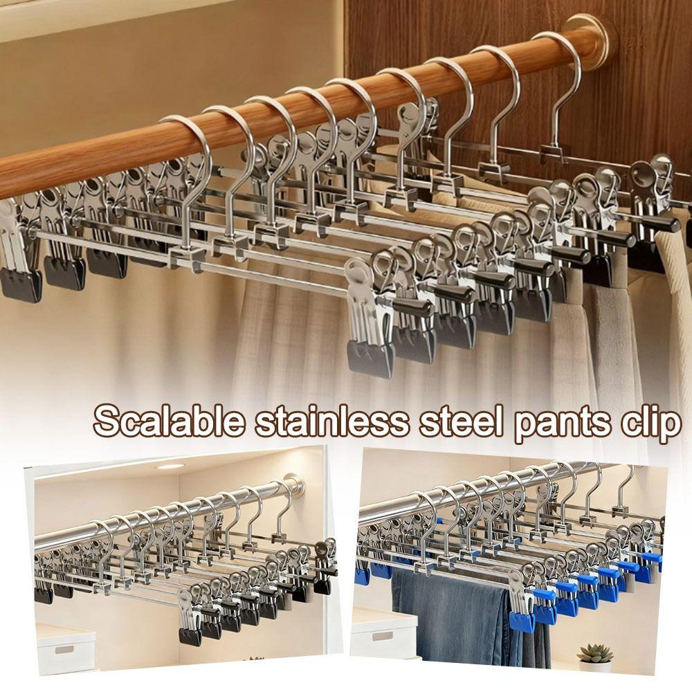 5pcs New Retractable Metal Trouser Rack Windproof with Adjustable Clips Pants Drying Hangers Non-Slip Closet Storage Racks