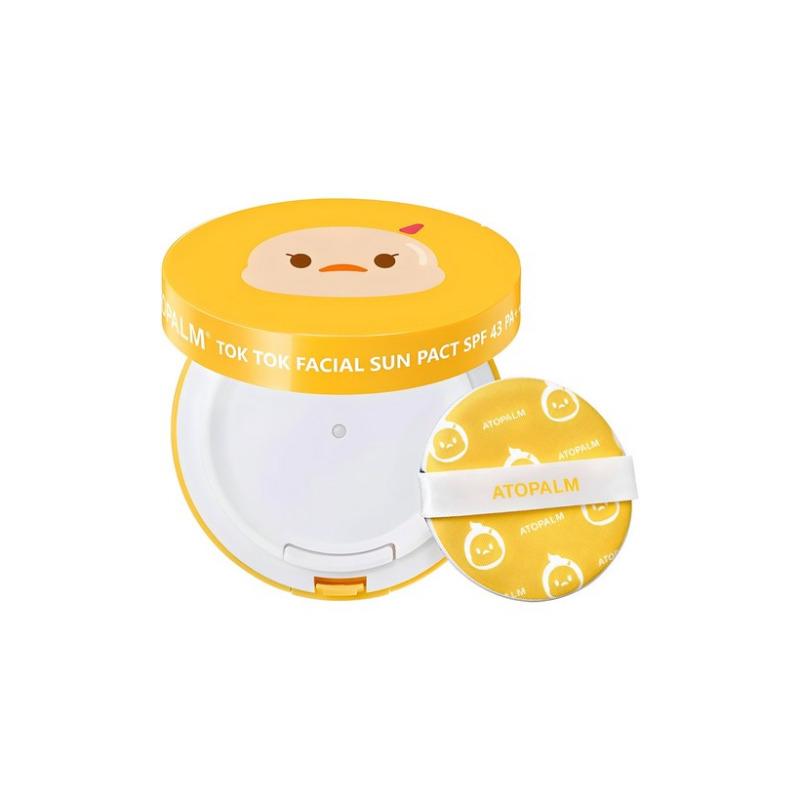 ATOPALM Tok Tok Facial Sun Pact SPF43 PA+++ is a gentle, portable sun protection pact designed for sensitive skin, including children and family use. With a convenient puff-type compact, it allows easy, mess-free application anytime, anywhere. The mild formula helps protect skin from UVA and UVB rays while keeping skin comfortable, smooth, and hydrated throughout the day.