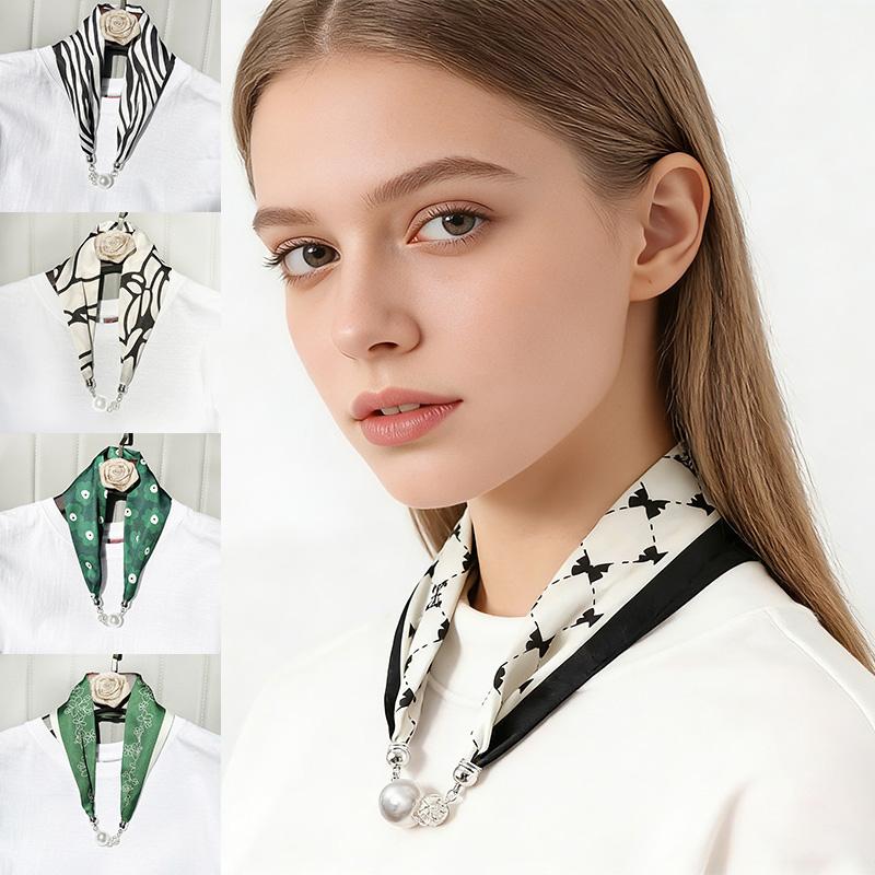 1Pc Cloth Accessories Versatile Patterned Texture Pearl Fashion Neck Protection Scarf Magnetic Silk Scarf
