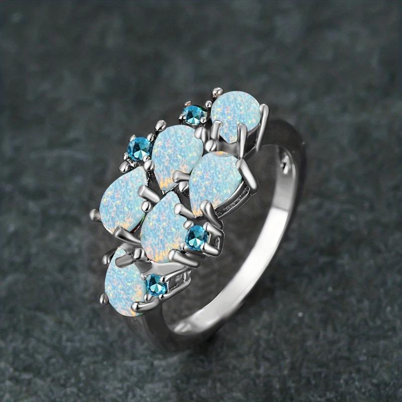 Huajie Women's Colorful Stone Blue Zirconia Teardrop Rings Elegant Delicate Banquet Retro New Ring Fashion Tide