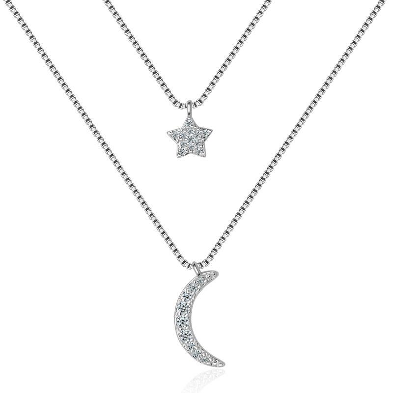 New Arrival Fashion Silver Moon and Star Chain Link Pendant Necklaces for Choker Collier Femme