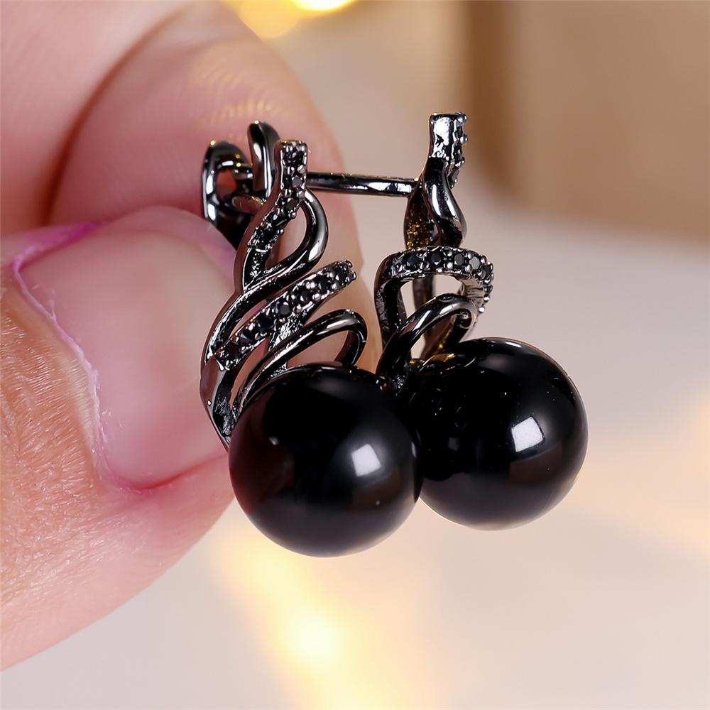 Charm Female Small Black Zircon Stone Hoop Earrings Vintage Fashion Gold Color Wedding For Women