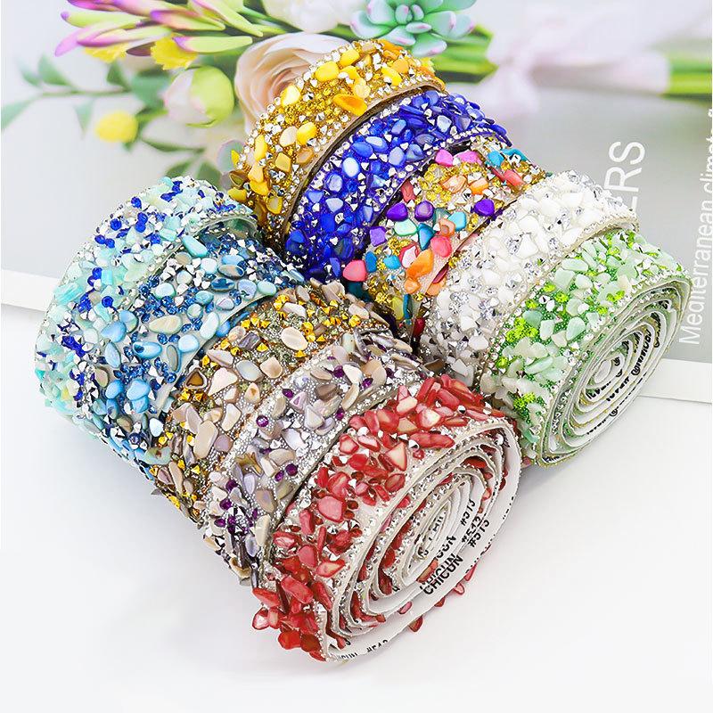1yard/roll Self-Adhesive Rhinestone Trim Tape 2cm Wide Colorful Crystal Decor for Bridal Dress/Phone DIY Craft Sewing Accessory
