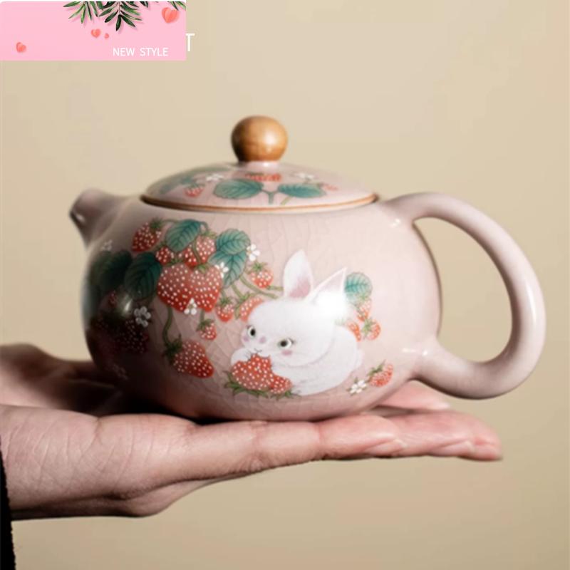 160ml Chinese Tradition Ru Kiln Ceramic Teapot Cute Cat Pattern Handmade Xishi Tea Pot Kettle Travel Portable Tea Set Teaware