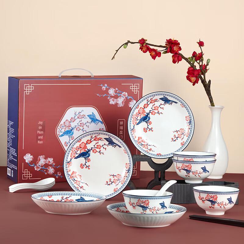 ModelMagpies on Plum Blossoms 16-Piece Ceramic Set