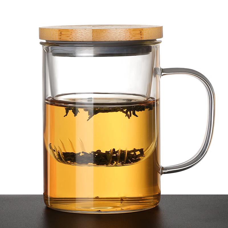 ZISIZ Glass Tea Infuser Mug with Bamboo Lid, 2-Pack