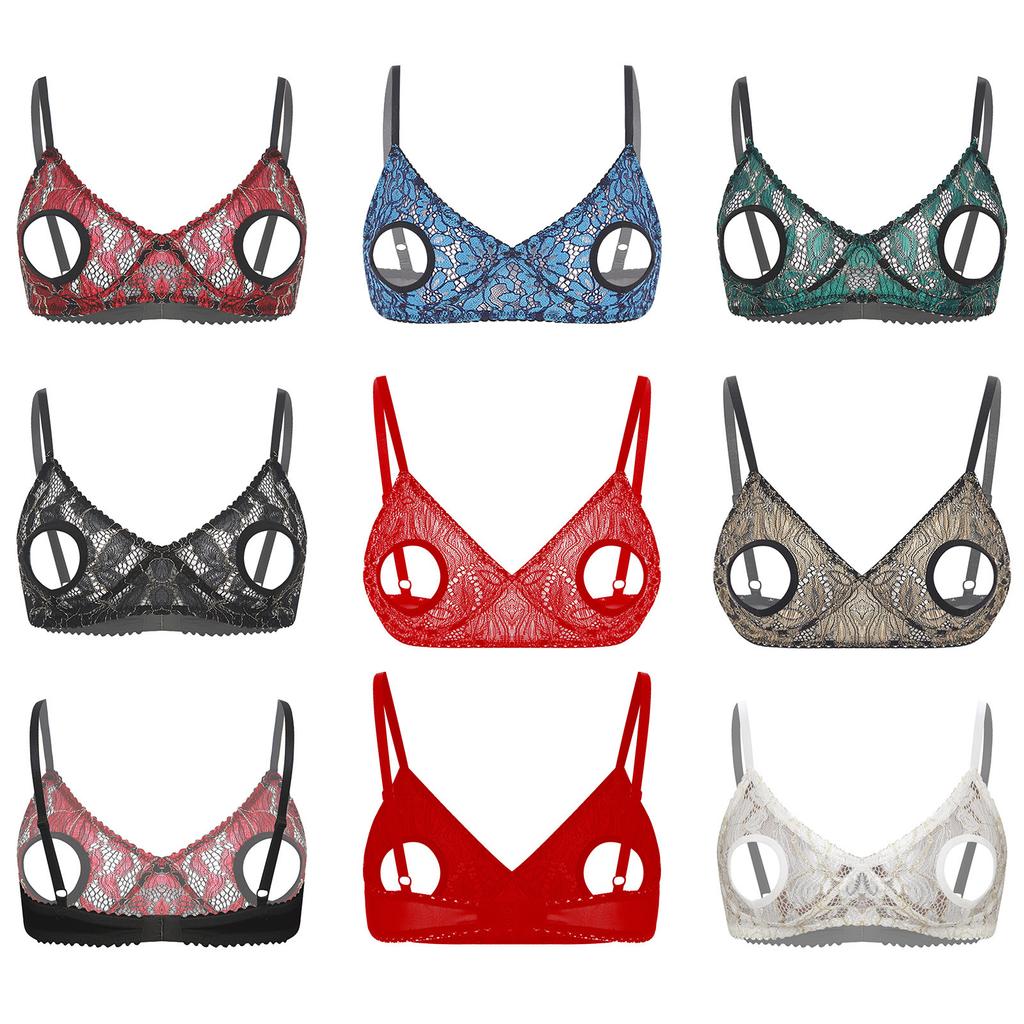 Womens Sexy Lingerie Plus Size Bras Lace Open Nipples Bralette Wire-Free Unlined Bra Top
