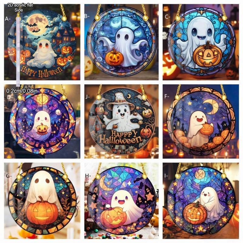 Halloween Ghost Sun Catcher - Circular Acrylic Sign, Acrylic Desktop Ornament, Wall Decor Art, Four Seasons Decoration, Novelty Home Decor